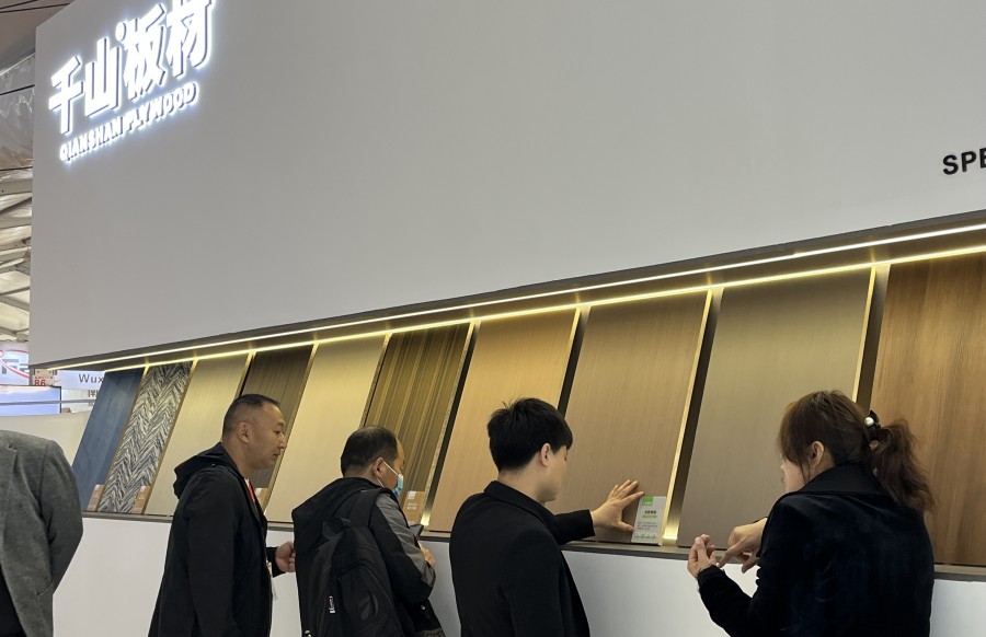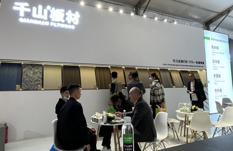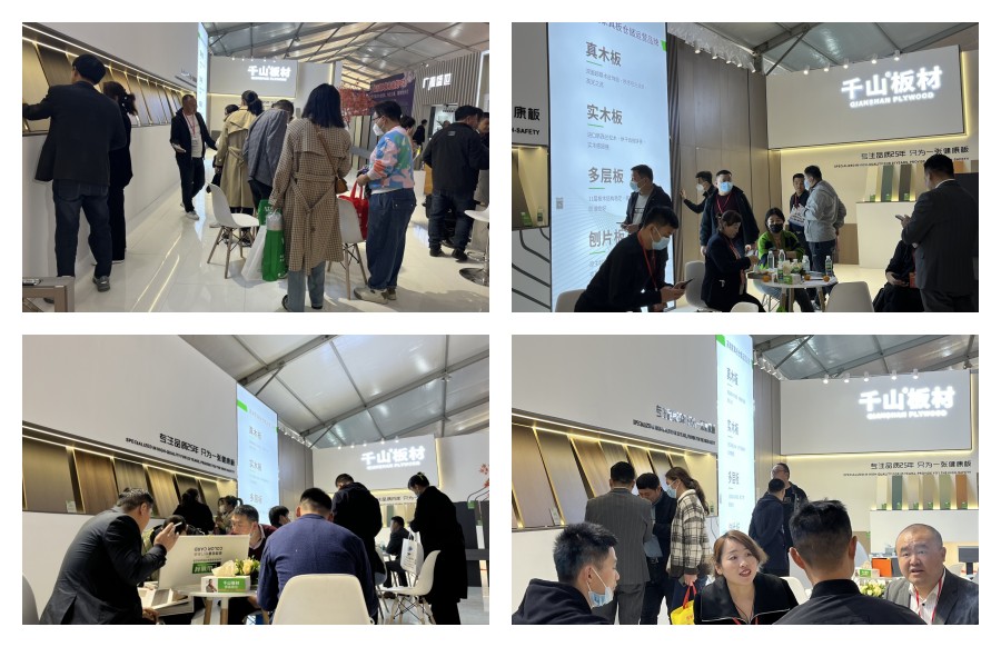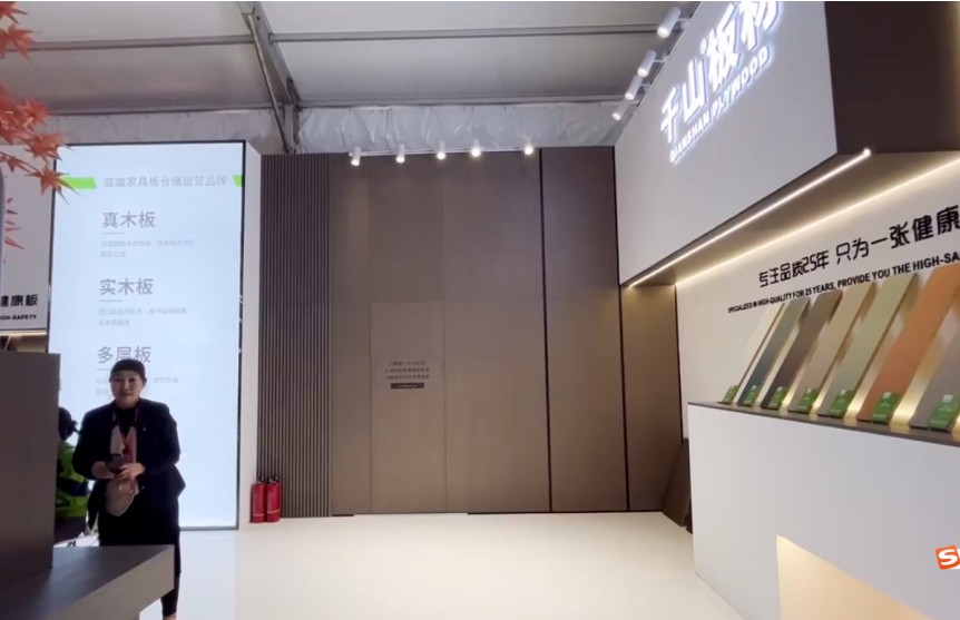 此次展會,千山以“高端家具板”為主題,打造簡約、有設計感的體驗場館。其中,家具板新品真木板、實木板、同色室內門備受關注,吸引眾多觀展客戶圍觀咨詢。