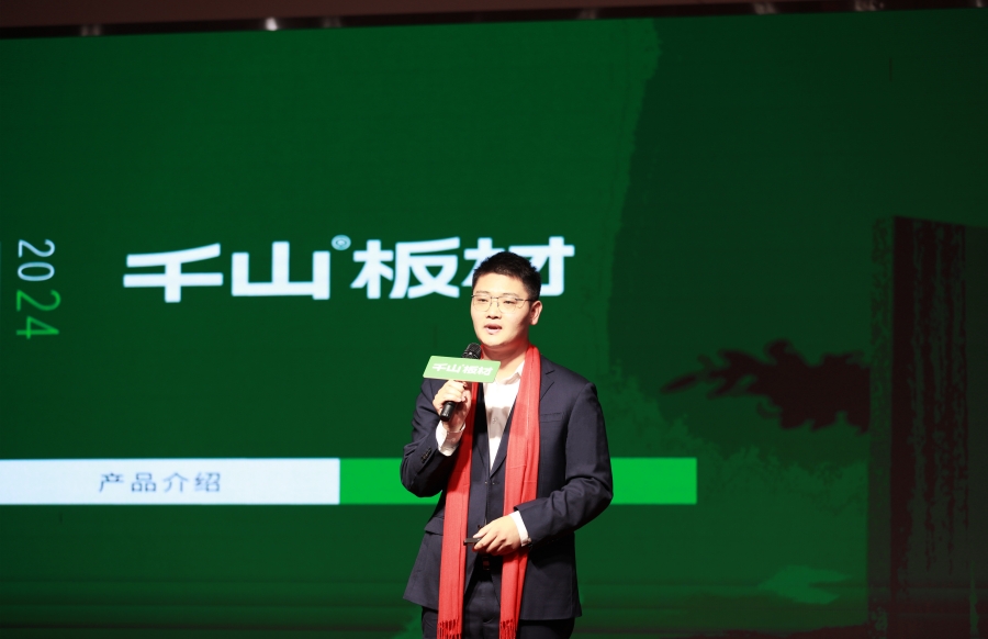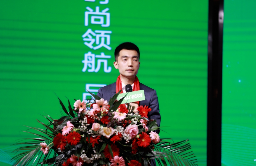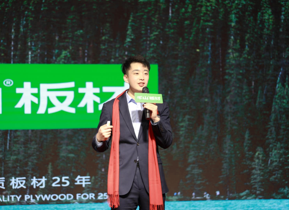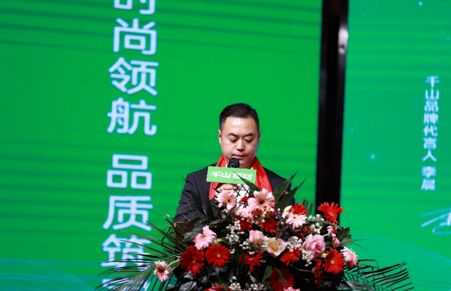 千山品牌事業部總經理王松致辭。王總分享到,千山作為板材之都龍頭企業,櫛風沐雨,走過了26年的歷程,離不開各位合作伙伴的信賴和支持。接下來千山將通過產品、服務、品牌協同發力,和金總一起共拓謀進,領跑江蘇地區的家居行業賽道。