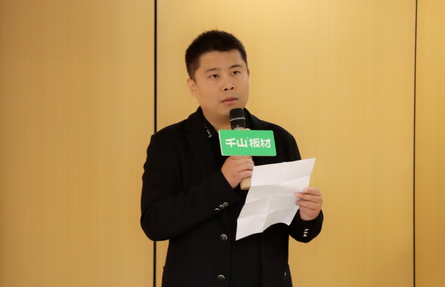 千山品牌事業(yè)部總經(jīng)理王松發(fā)表講話,王總對各位伙伴的到來表示歡迎。王總分享到,全屋定制工廠和家具廠一直是千山關(guān)注的重點(diǎn),千山家具板現(xiàn)貨倉的快速布局順應(yīng)了全屋定制訂單制和板材倉儲式的必然趨勢。山東倉和四川倉的成功啟動是全國現(xiàn)貨倉戰(zhàn)略布局的良好開端,相信現(xiàn)貨倉一定會助力定制工廠的伙伴們實(shí)現(xiàn)更快發(fā)展。