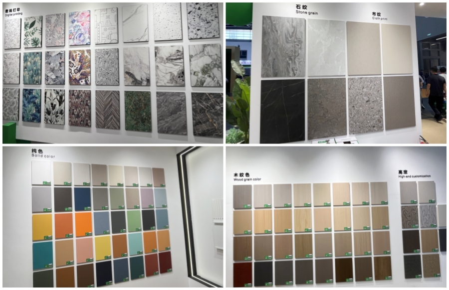 千山板材擁有的內(nèi)直外圓陽角、L型、U型(抽屜)、圓柱、門套9大規(guī)格圓弧產(chǎn)品,同步15款花色,充分滿足不同的應(yīng)用場景,成為展會現(xiàn)場炙手可熱的門墻柜一體化產(chǎn)品。