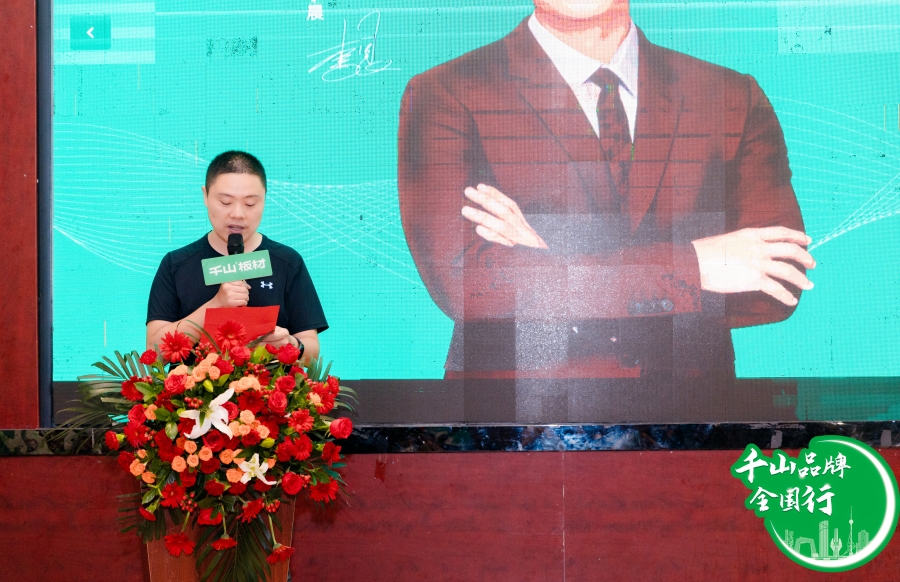 千山板材大區經理王殿忠致辭。王經理分享到,2024年,千山以強勁的市場響應速度,打造形成更完整的產品體系,并以“現貨庫存 1張起發”的現貨倉布局為經銷商及合作伙伴注入新的發展動能。