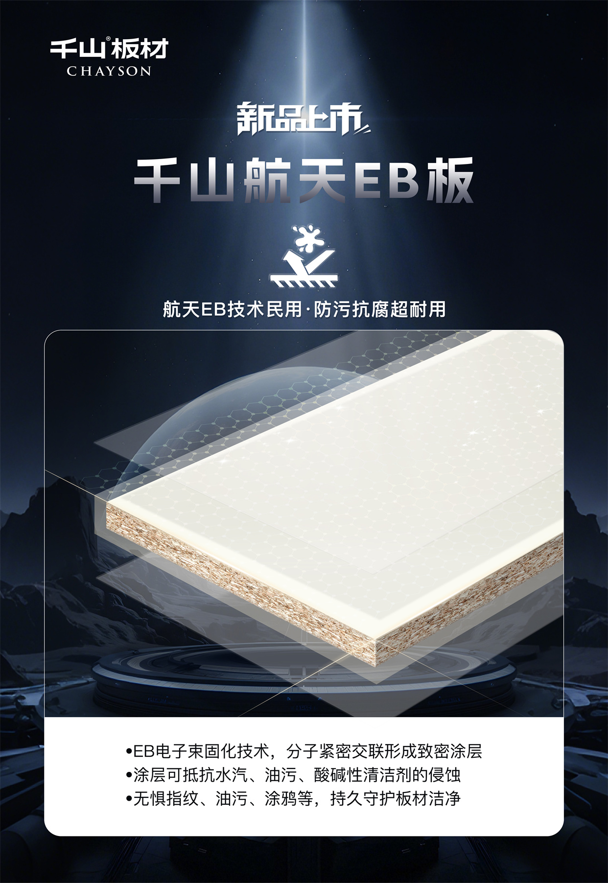 千山航天EB板:耐污一擦凈,十年不黃變!讓黑科技點亮家的奢顏,用高能品質(zhì)守護(hù)健康空間,歡迎當(dāng)?shù)貙Yu店鑒賞咨詢。